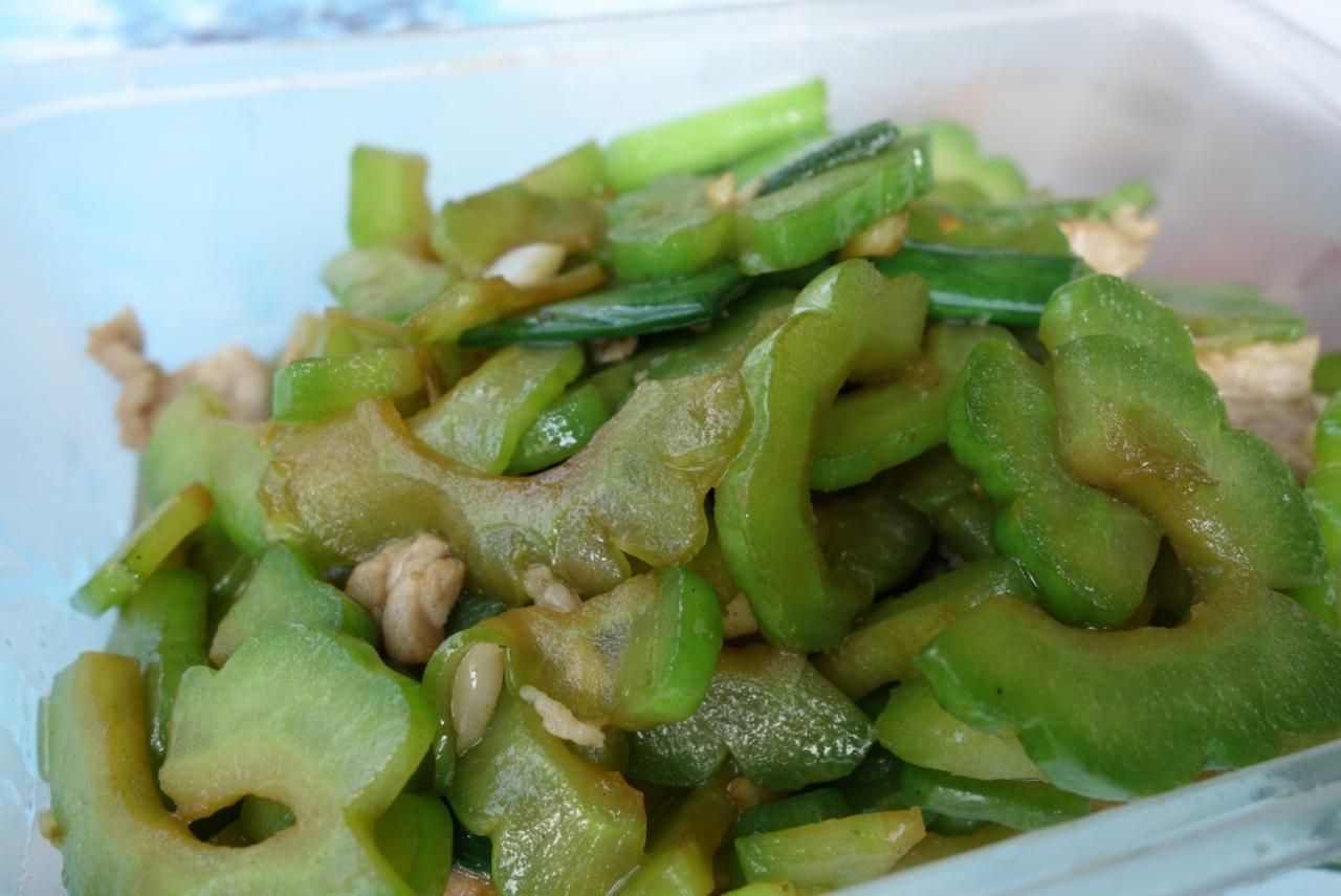 勿論、下手っぴですから、二つくらい齧ったら、もうお昼ごはんがやってきました。苦瓜炒肉。と、たっぷりのごはん
