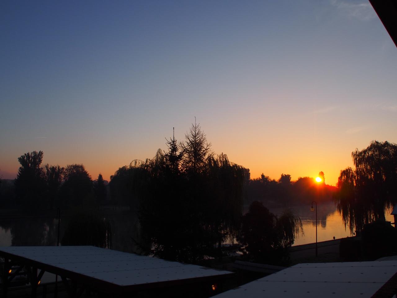 朝から快晴です。部屋から見た朝日、運河沿いのお宿は風景が満点です。