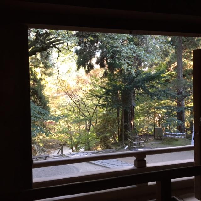 金堂の中から外を映しました。もう少しすると紅葉で赤くなるそうです。春はシャクナゲでピンク色になるそうです。一年を通してきれいな風景を楽しめそうですね。