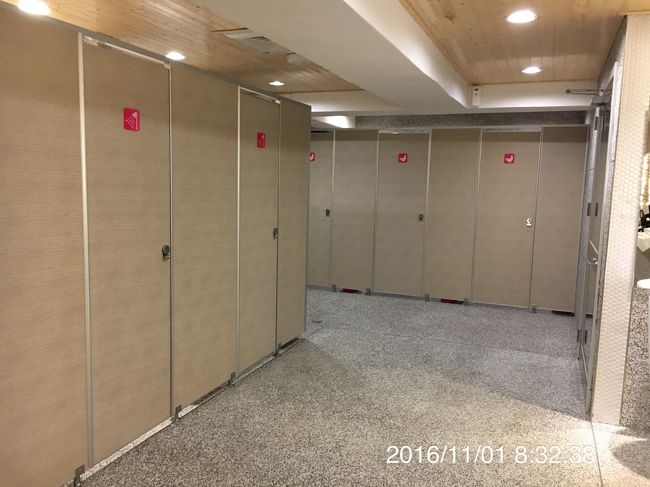 女性フロアの洗面台、 トイレ、シャワールーム。