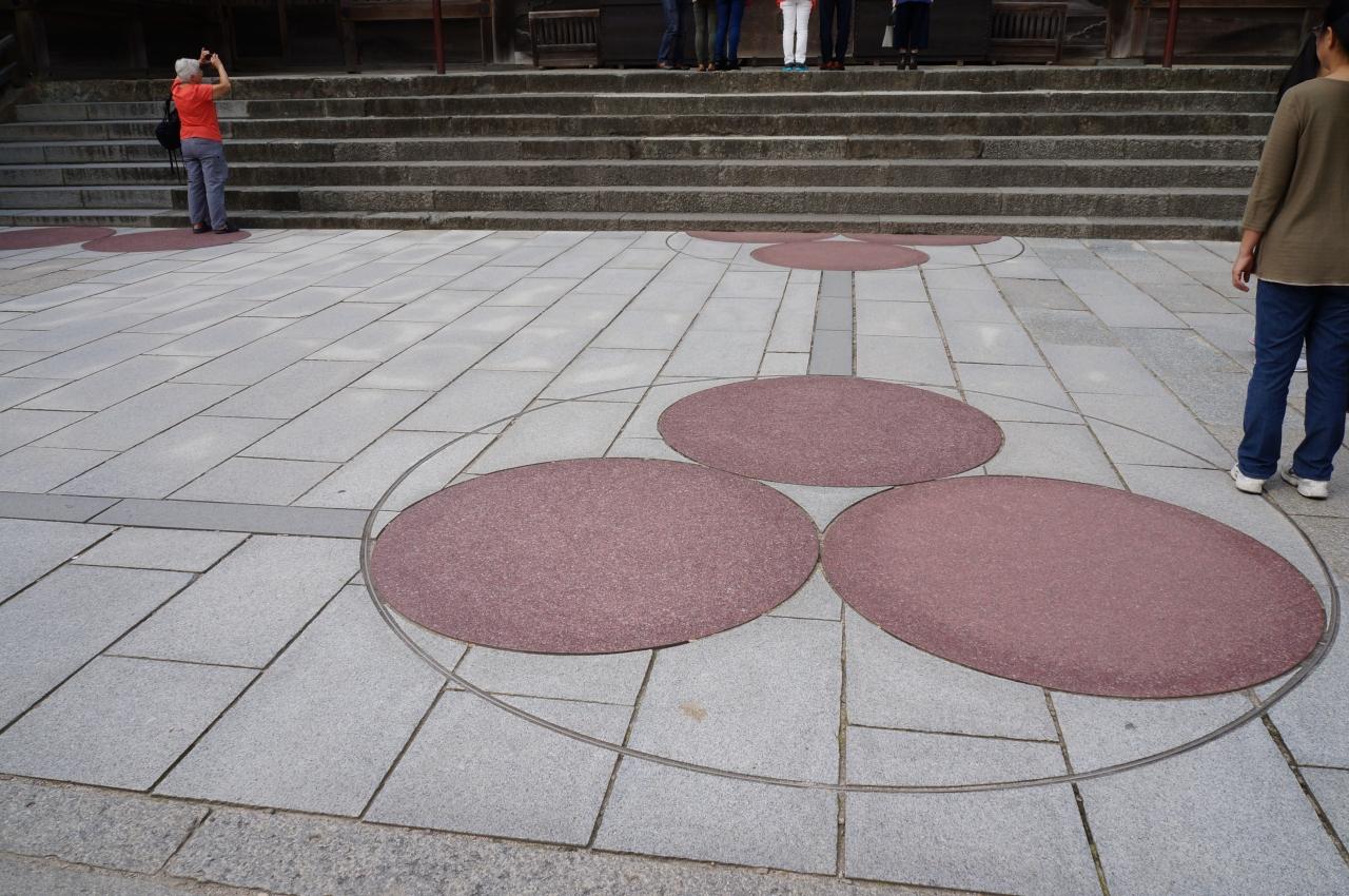 本殿の階段の目の前に何やら3つの丸がくっついたものがあります。