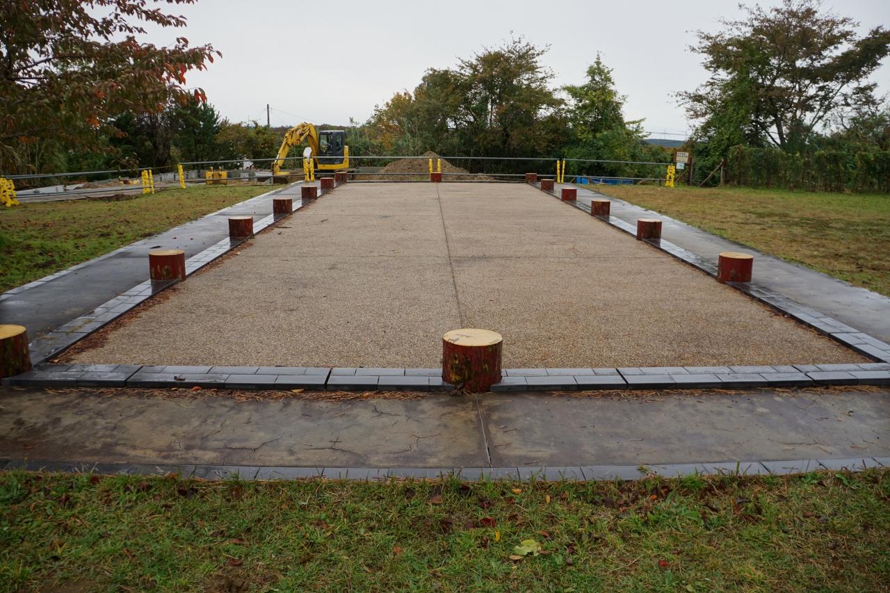 城は現在も発掘、その後の整備が行われている途上のようで、塀が一部復元されていました -
