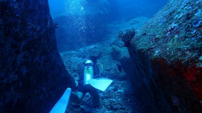 この岩の下で潜ってました -
