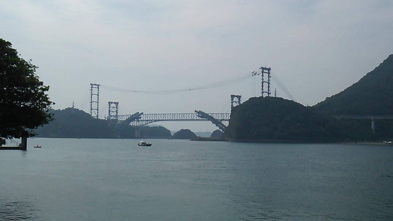 遠くに見えるのは三角エリアと上天草というところを結ぶ天門橋という橋らしいです。 -