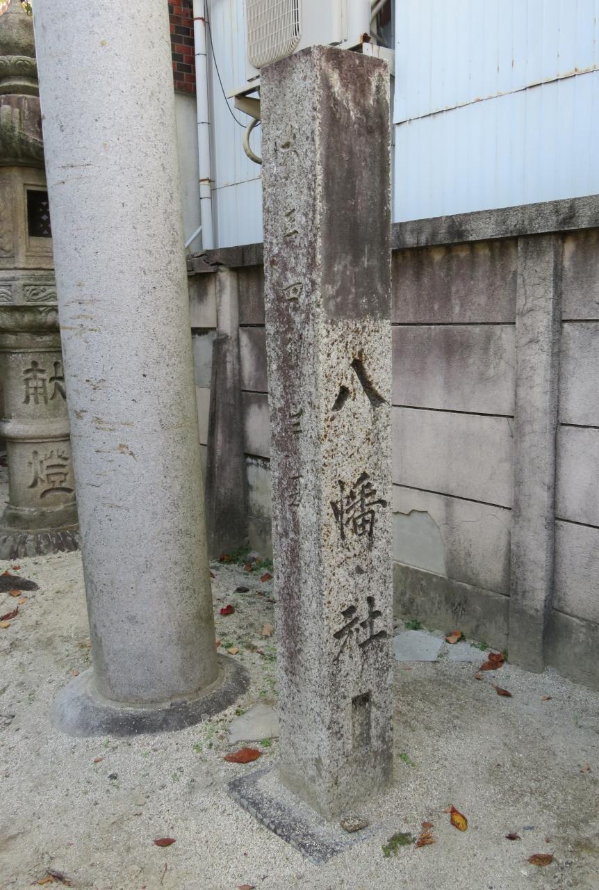 あっという間に、植田八幡宮の鳥居がある場所に到着しました。この鳥居は境内の東側にあるもので、表参道の鳥居とは違っていました。鳥居の扁額の文字は『八幡社』、石碑の文字も同じでした。