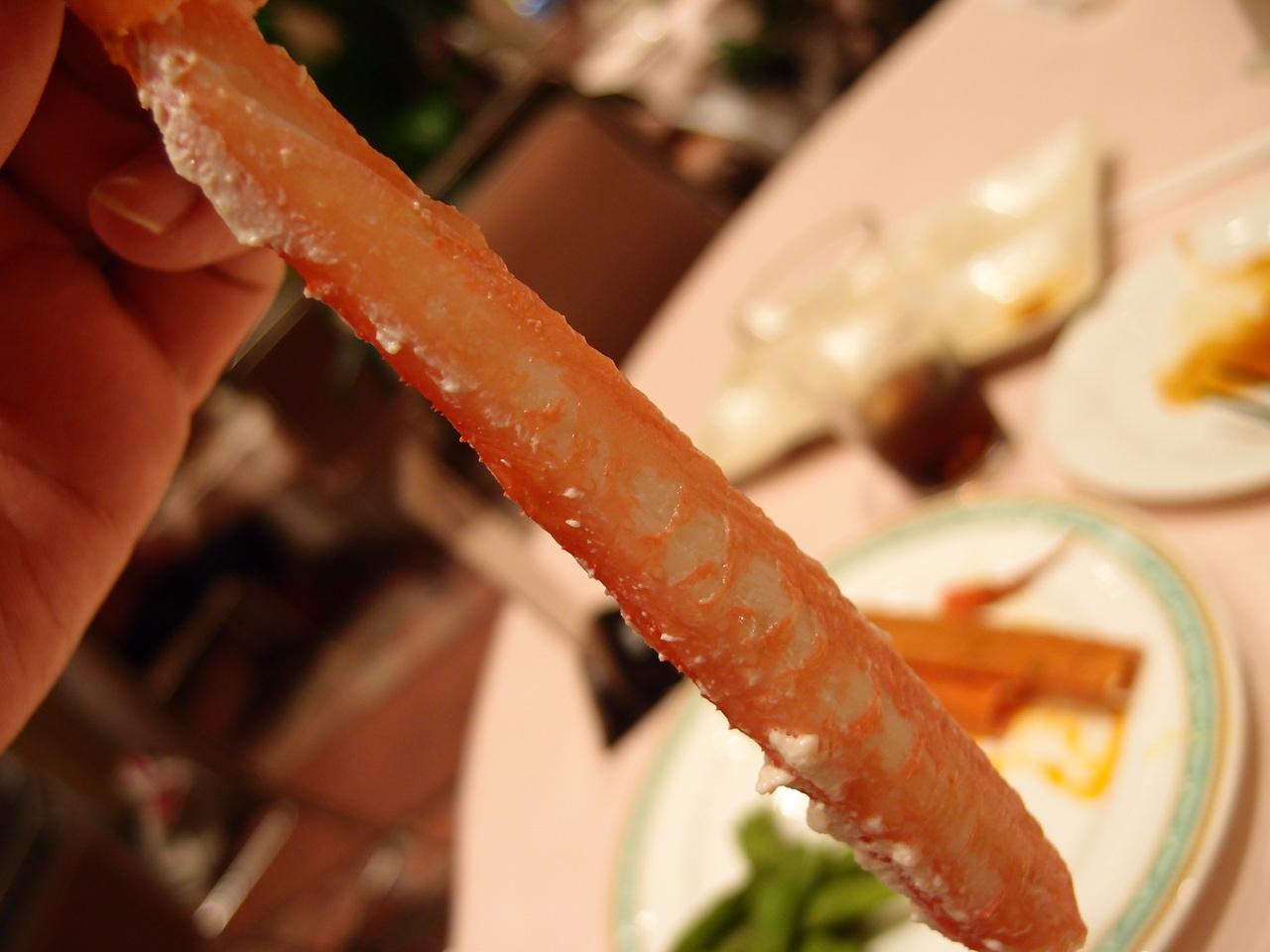 今宵の夕食はステーキとカニが食べ放題バイキング。