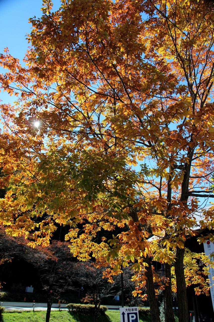 道の両脇は紅葉真っ盛りです。