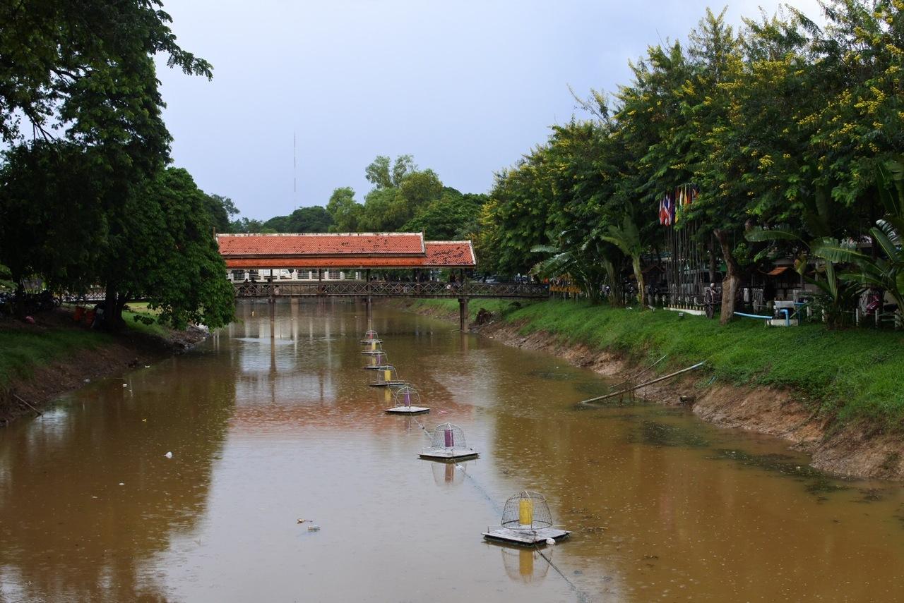 シェムリアップ川を渡ったところにあるマーケットにいたらスコールが。 -