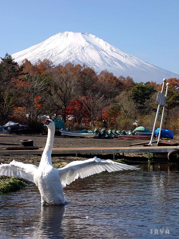 白鳥と富士山