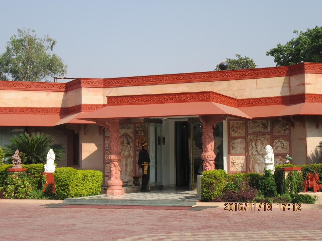 クリシュウナ寺院の前、入るには一切の持ち物持参禁止で靴も脱がなければならな