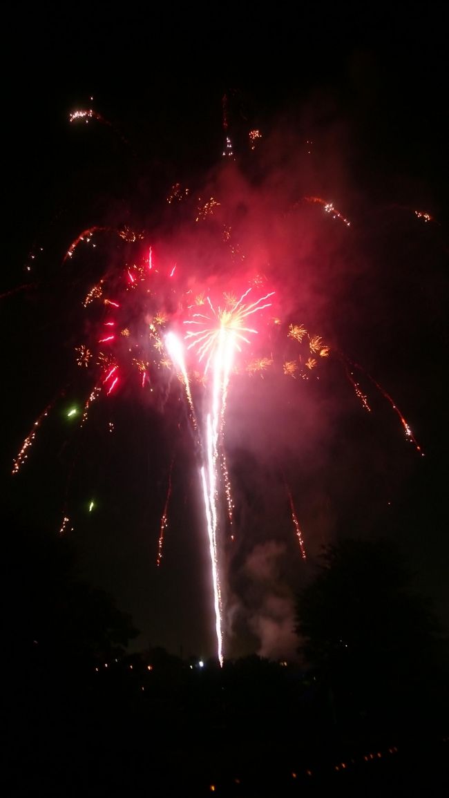 すぐ近くに上がるので迫力満点で、光と音のズレがほとんどなく、キレのいい音が周囲の山にも響いて、これまで見た花火の中でも特に印象深いものでした。