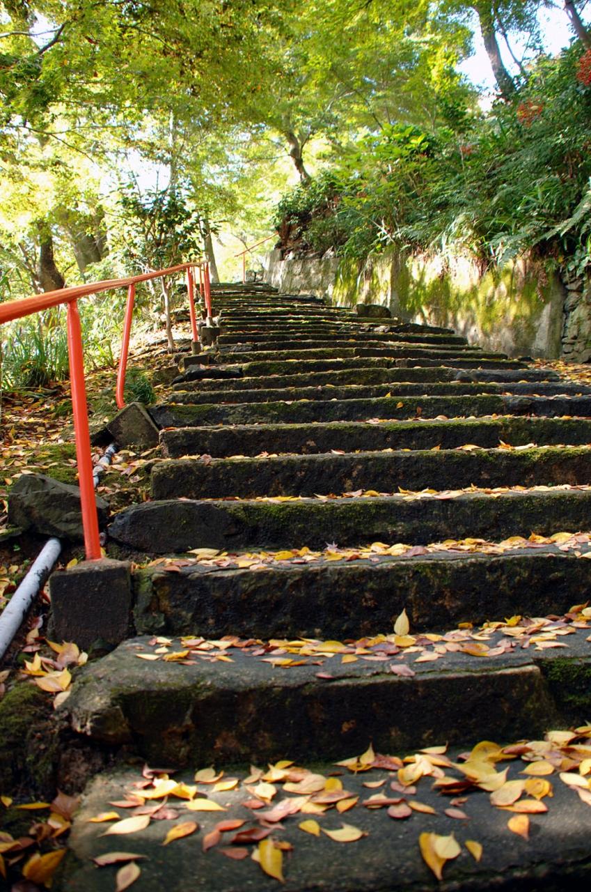 参道の階段を下りながら、いつもの落ち葉撮影もしておくことに。