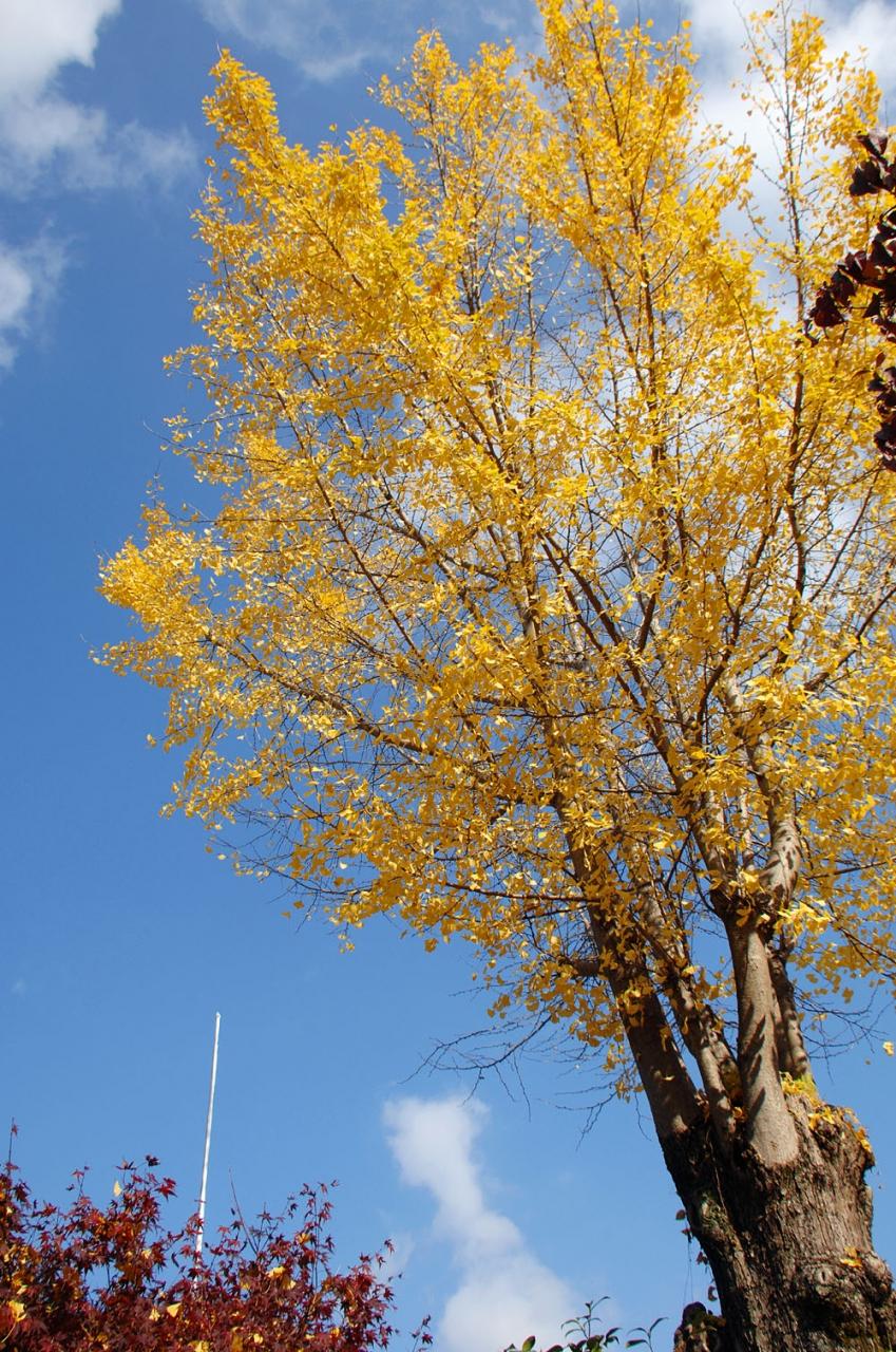 来年は、丸く固まった黄色いうちわのような一本銀杏を見たいですね!
