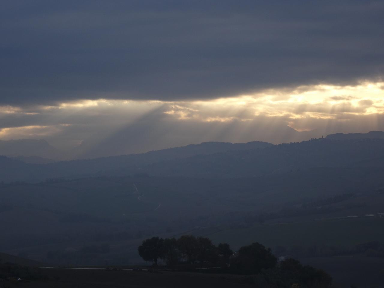 雲に覆われた所から一部だけ光が差しています。