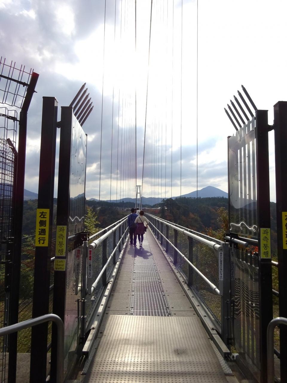 この大吊橋は、日本一高い歩行者専用橋の吊橋で有名ですが、橋の上からは日本の滝百選に選ばれた震動の滝の雄滝や雌滝が見られます。絶景の連続であいた口がふさがらない状態でした。