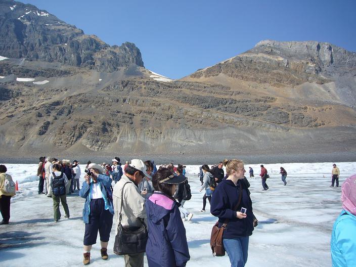 そして、カナディアンロッキーのハイライト、アサバスカ氷河に上陸します。