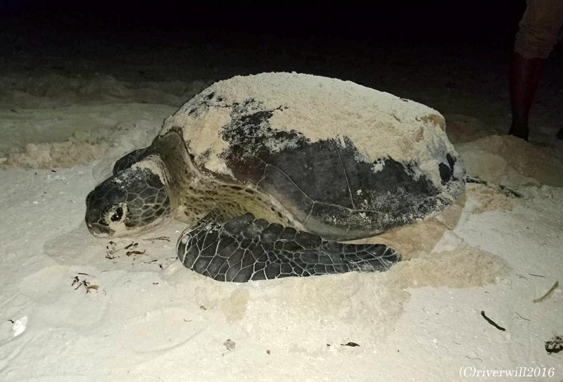 その代わり、島民曰く、めったに見ることができないという、ウミガメの産卵を目撃することができました。 -