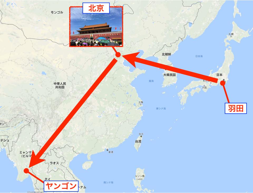日本からミャンマーまでは、大昔にANAが直行便を運行していたが、一旦中断。そして数年前にビジネス客を目当てに直行便が再開され、いっそう行きやすくなった。 しかしながら、自分のような人間にはお値段的にちょっと厳しいものがあり、今回は北京を経由してヤンゴンin。