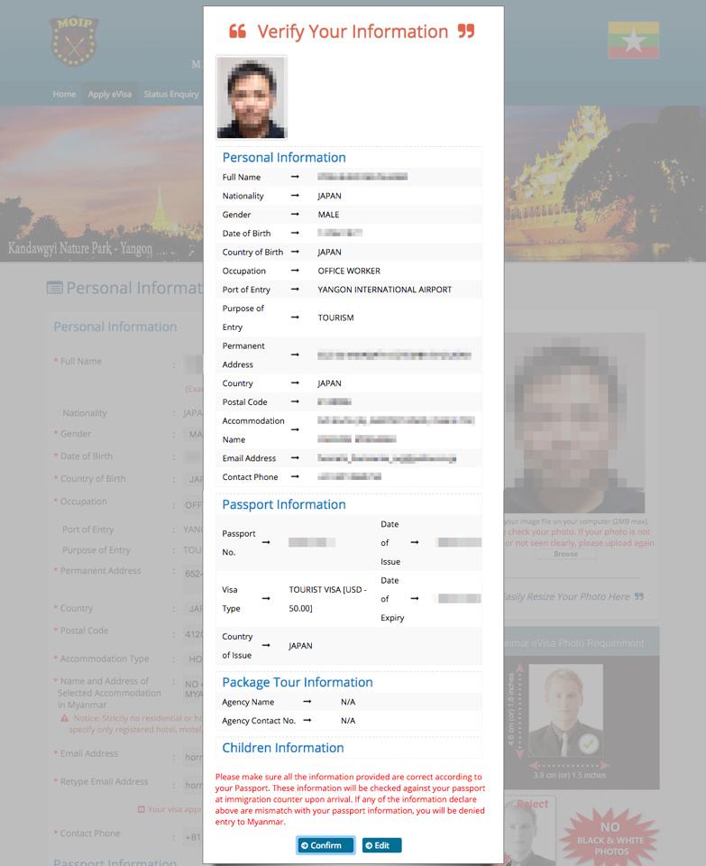 まず、e-vizaが適応できるのは、「ヤンゴン」「マンダレー」「ネピドー」の3つの空港から空路で入国する、もしくは「tachileik」「myawaddy」「kawthaung」の国境検問所から陸路で入国する場合のみ。 それ以外の場所から入国する場合は、以前のように大使館に行って事前にビザを取っておく必要がある。