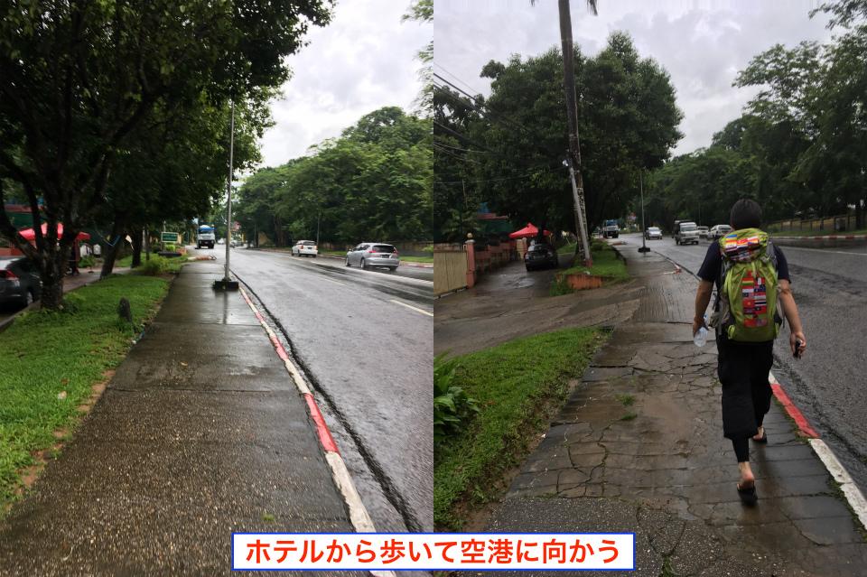 ホテルで朝飯を食べたら、空港に歩いて向かう。 朝食を食べている時には雨が降っていたので「また雨の中を歩くのかよ~」と、少し萎えてしまっていたが、ホテルを出発する時には運良く雨が止んでいたので急いで向かう。 -