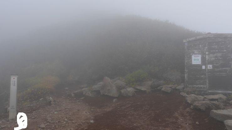 8合目と9合目の間にある携帯トイレブース。9:29.