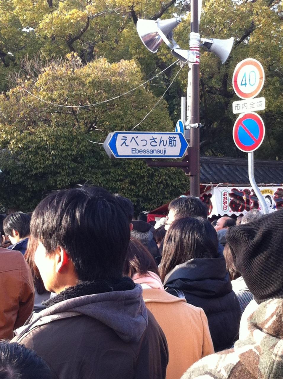 300から500メートルのえべっさん筋ですが、露店も出ていてかなり混雑しています。