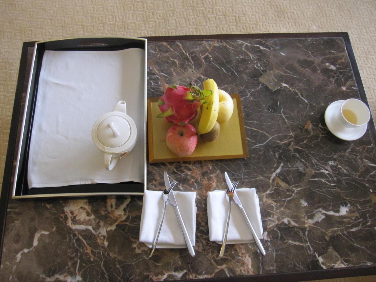 ウェルカムフルーツ。お茶は後から運ばれてきました。