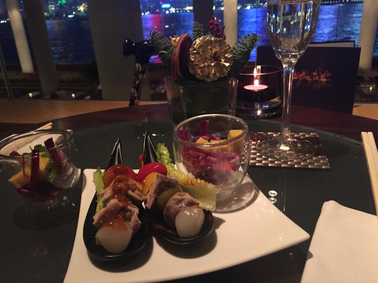 毎度の出不精。ルームサービスの夕食。だって景色いいし、らくちん。