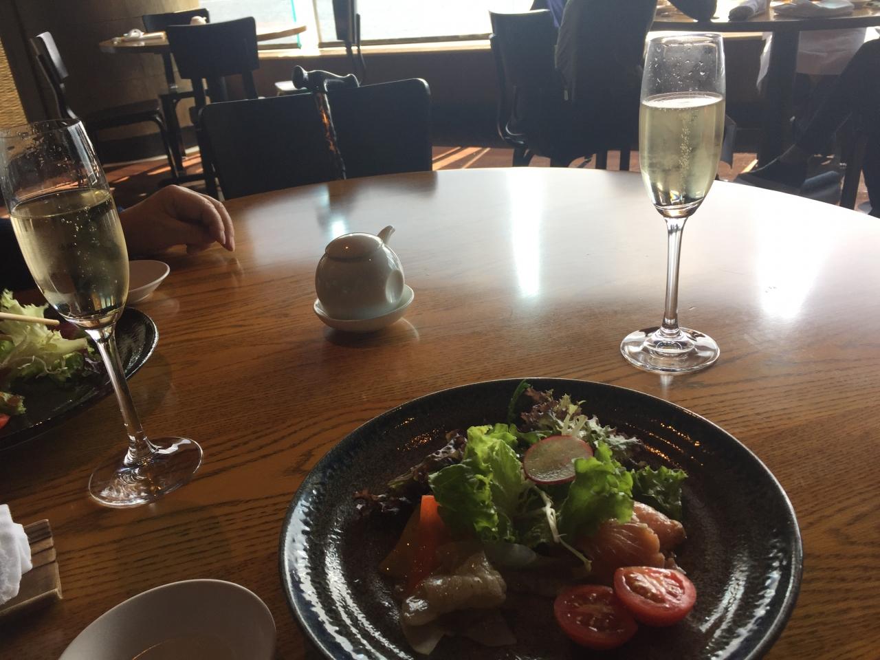 スパークリングはなかったので、白ワインで。 -