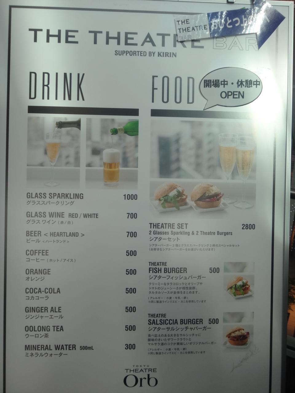 のドリンク&フードメニューの写真。