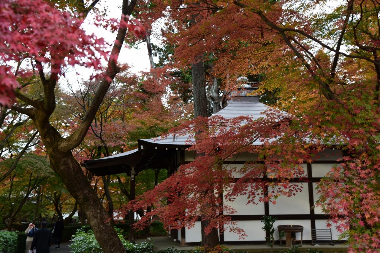経堂南側の紅葉は、通路を覆い隠さんばかりに枝を広げています。