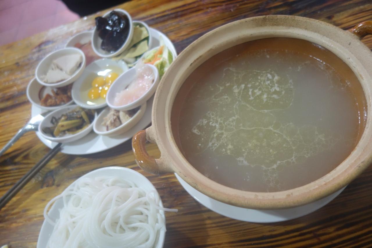 スープやって来ました。砂鍋なんやね。そ言えば、お品書きも、砂鍋過橋米線やったかな?