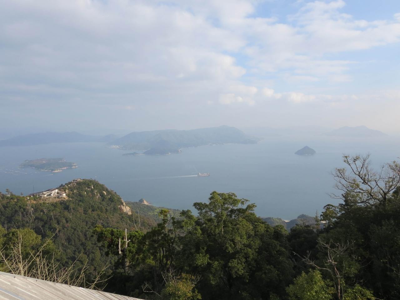 中央左の白い建物が本日宿泊する安芸グランドホテル。