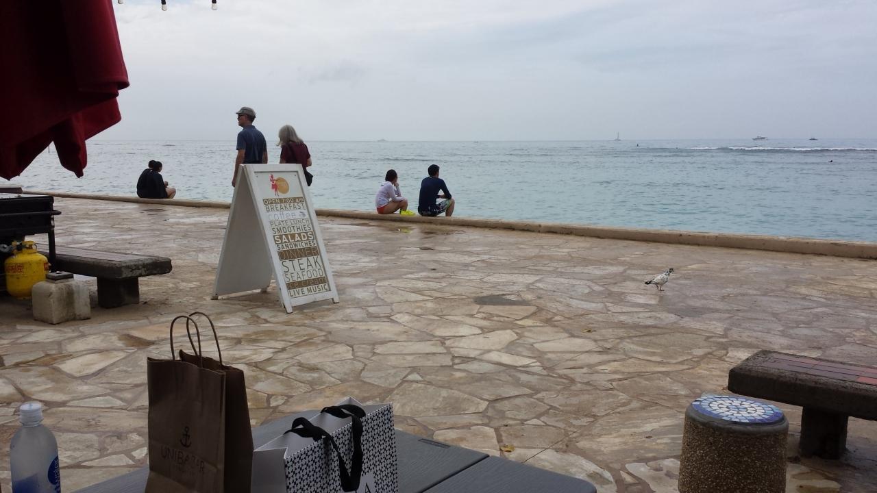 ラナイで朝食を取り、ピンクラインでTギャラリアまで行き、Tギャラリアバス停前のユニバザー、ロイヤル・ハワイアン・センターでウインドーショッピングと買い物を済ませ、カピオラニ公園まで散歩し、ペアフット・ビーチ・カフェで昼食を取り、アストン・ワイキキ・ビーチ・ホテルバス停でピンクラインで帰ってきました。