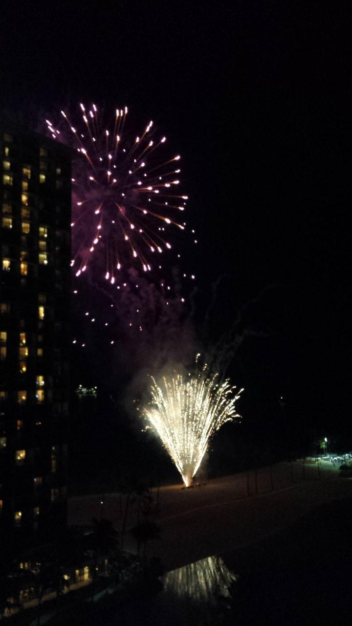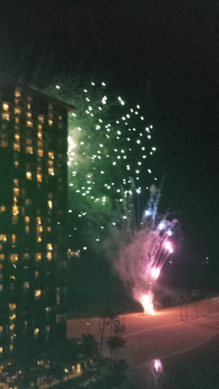 夕食は、ラナイでヒルトンの花火を見ながら、また、アルコールを飲みながら取りました。
