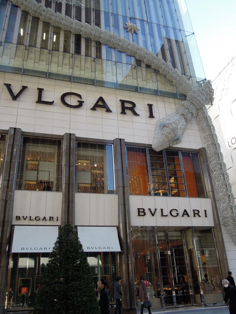『ブルガリ』のビルをぐるっと囲むようにデコレーションされているのはお馴染みの蛇。