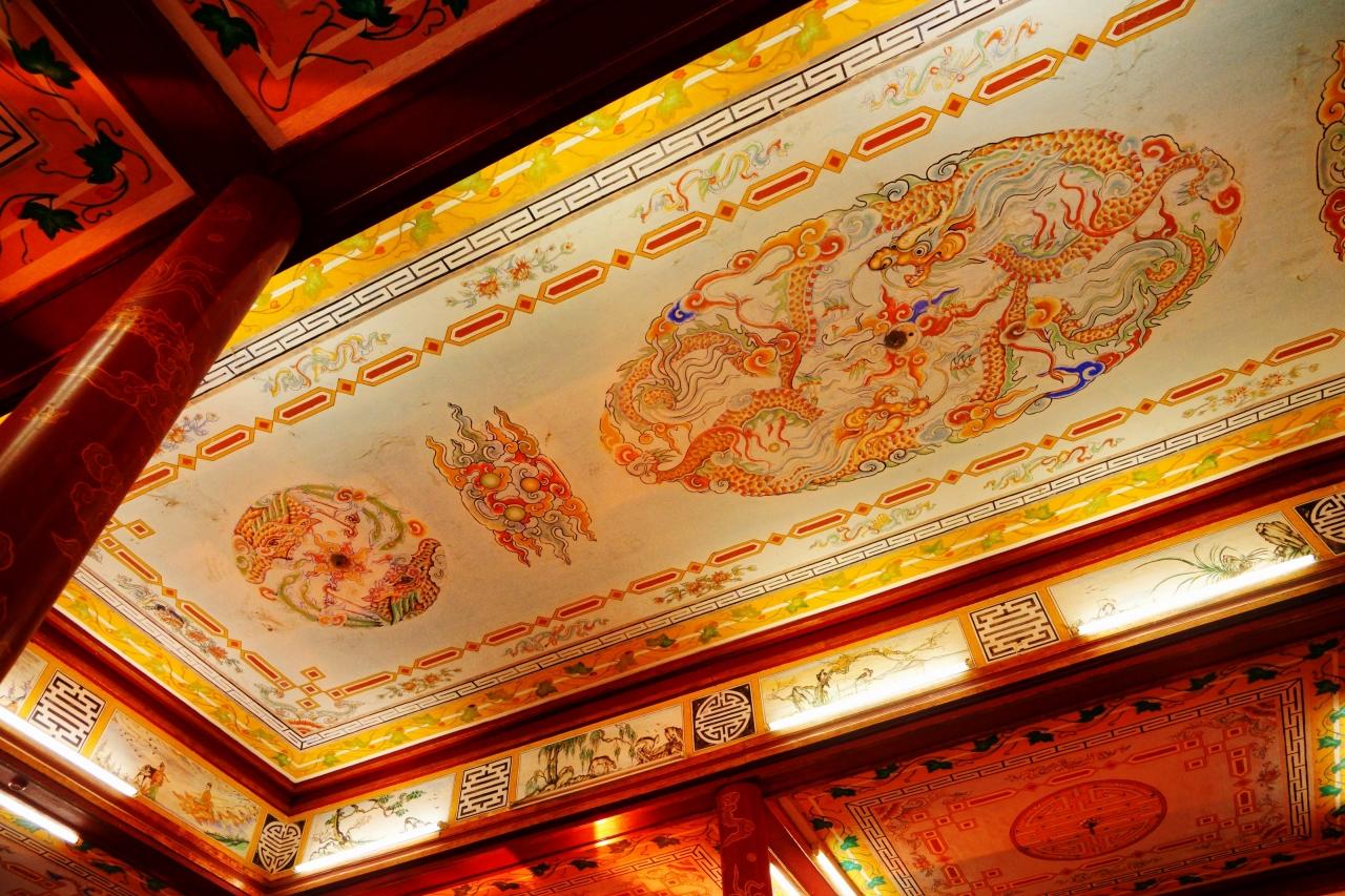 中心に金箔を張った青銅製のカイディン帝の等身大の像があります。