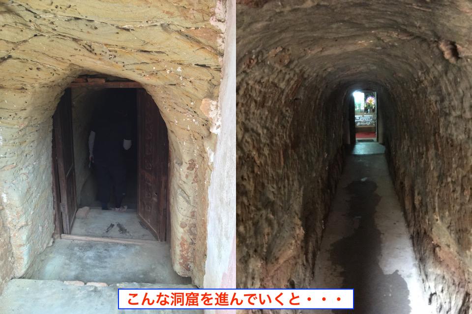 ガイド本には何も書いてなかったので「???」だったのだが、とりあえず行ってみると、こんな感じの洞窟があった。 ここら辺の寺院はこの洞窟も有名らしい。 んで、中に入れそうだったのでとりあえず入ってみると・・・ -