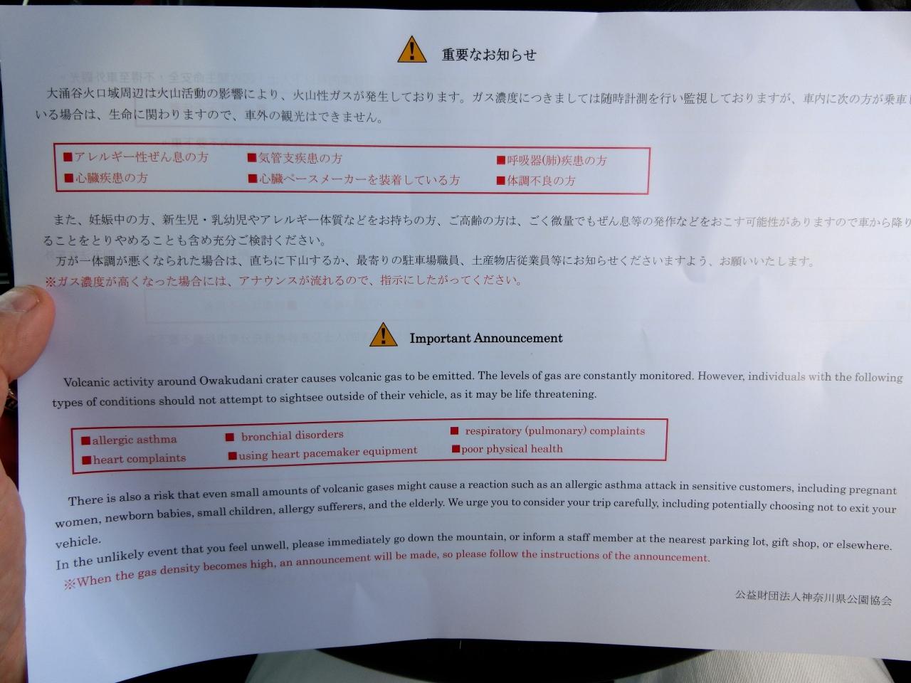 火山ガスが発生しているので、健康不安がある方や、妊婦、高齢の方への注意喚起です。 -