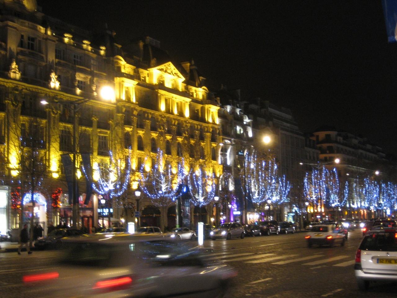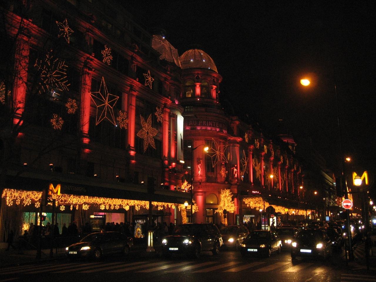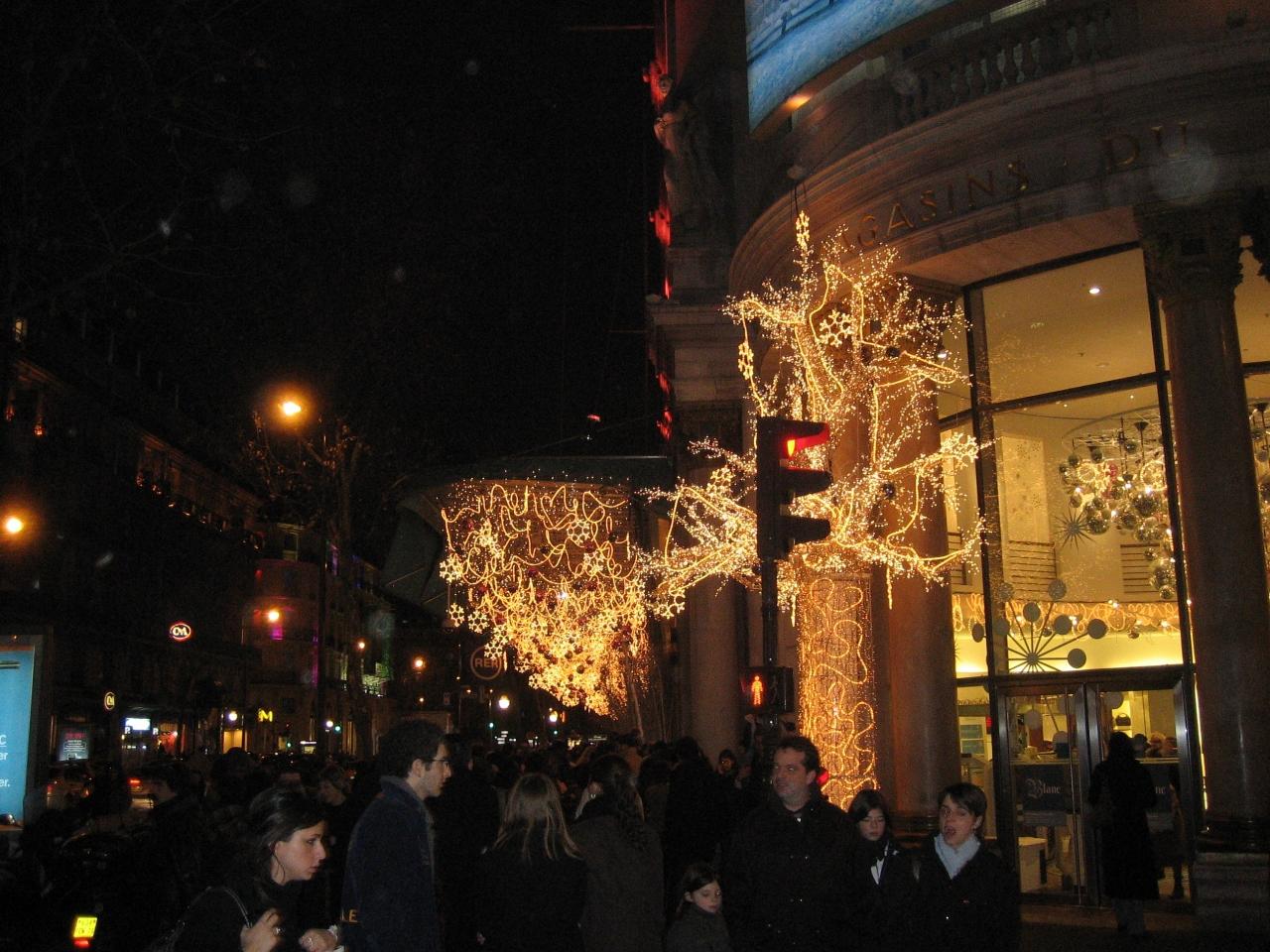 オスマン通りのデパートはどこも競うようにイルミネーションで飾られています。カメラの性能が悪くあんまり綺麗に見えませんが・・(笑)
