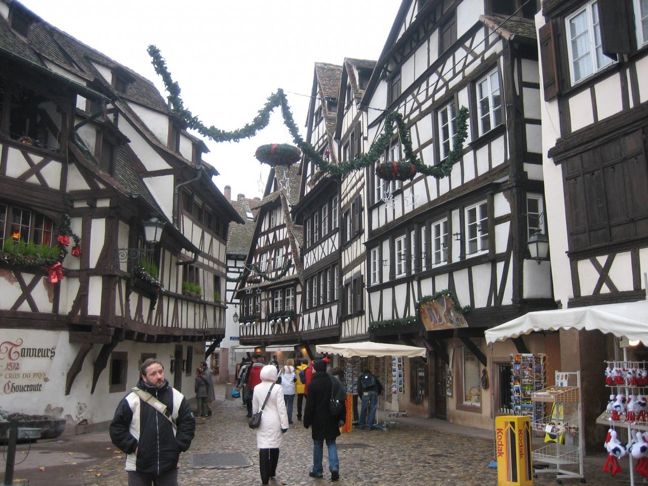 ストラスブール到着!グラン・ディルを散策しました。過去にドイツ領となっていたことから建物もその影響を受けているそうです。木組みの家がかわいい。