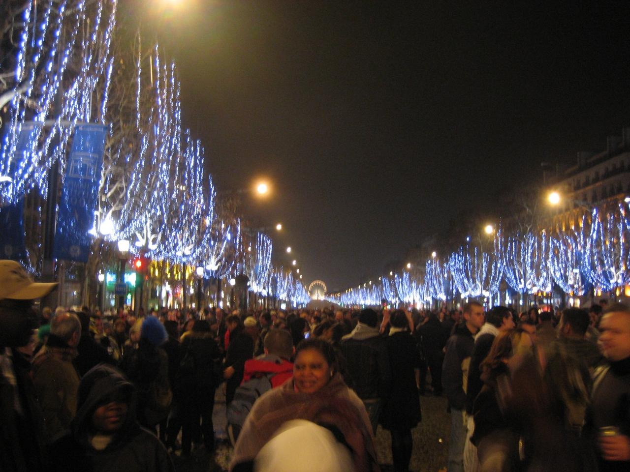年越しのカウントダウンのために、シャンゼリゼ通りには多くの人が集まってきました。皆陽気です。