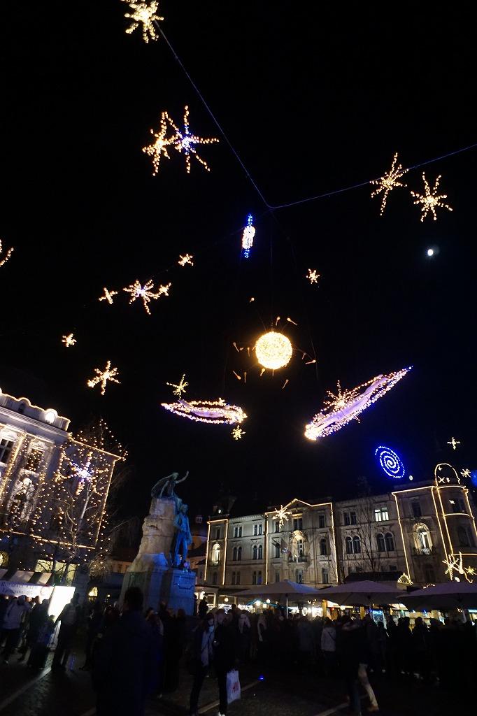 ザグレブと10のクリスマスマーケット巡り(2)リュブリャーナの夜のクリスマスマーケットを楽しみ、わりと豪華な...
