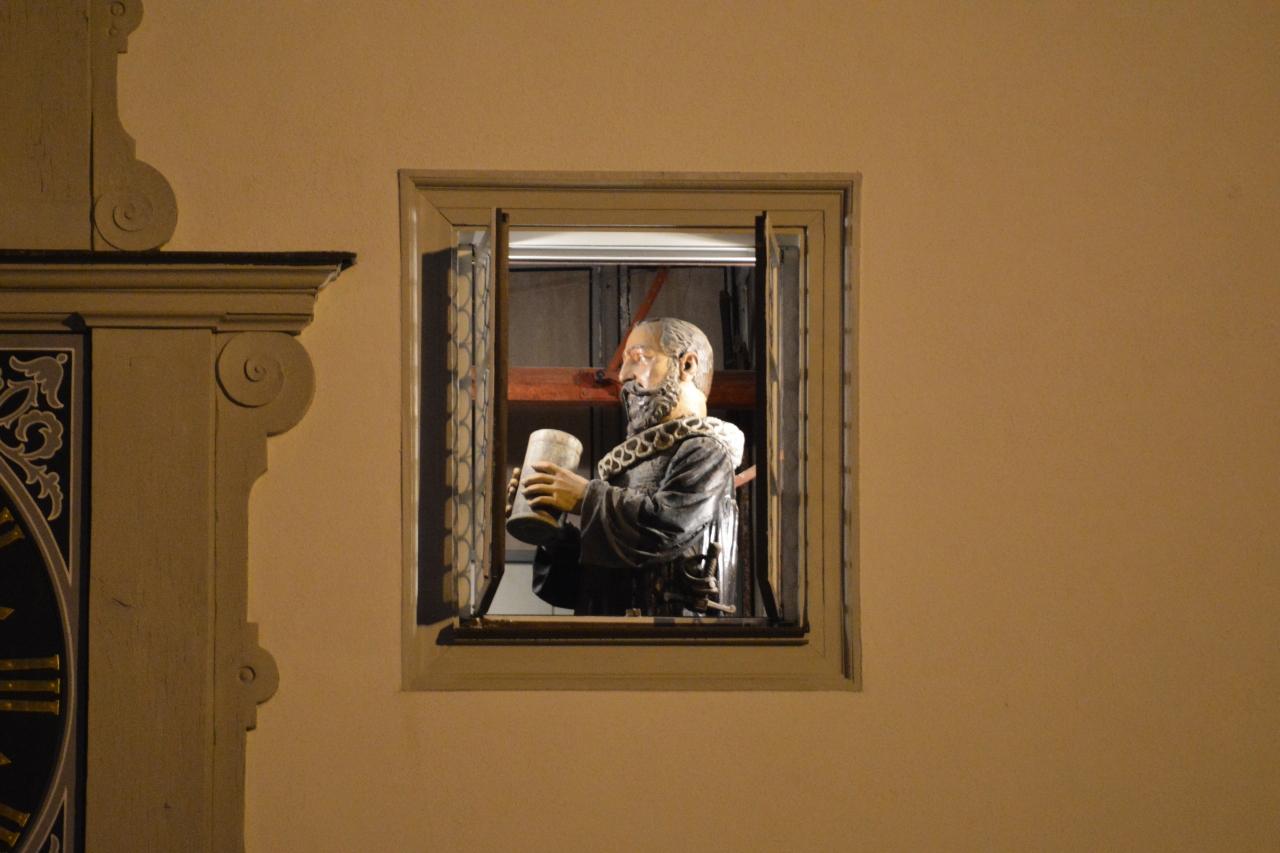 毎時正時に窓が開き、市長が一気飲みをします。 -