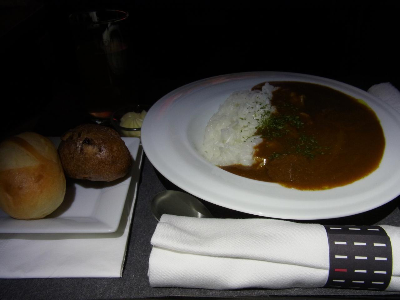 その時にカウンターのお姉さんに「カレーが美味しいので、是非ビジネスクラスもご利用ください」って言われたの。