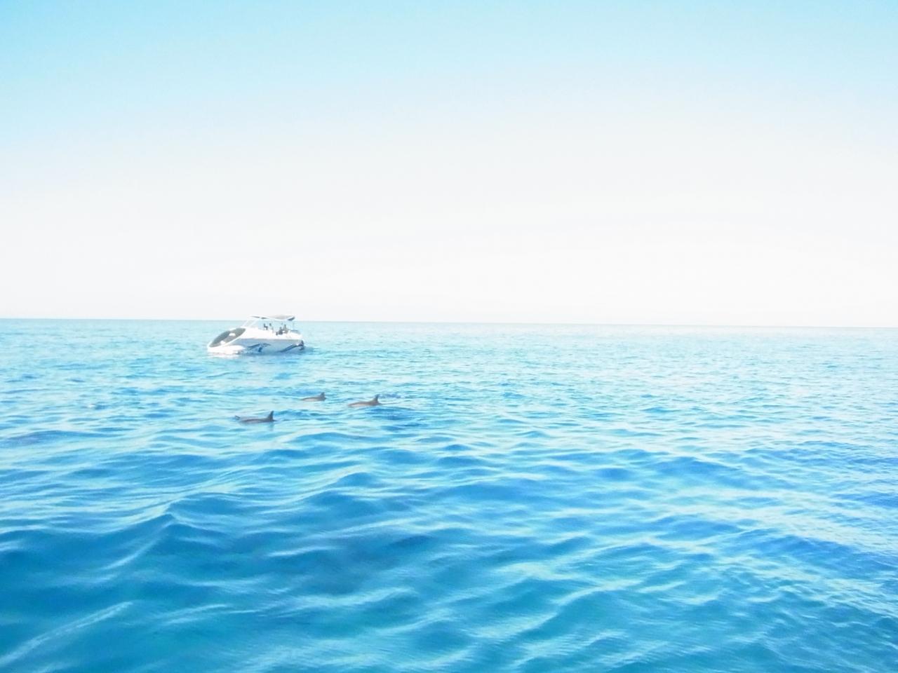 イルカが集まっている場所に到着、他の船もこの場所に来ている。イルカが見られる確率は90%以上と書いてあったから集まる場所が決まっているのだろうか?