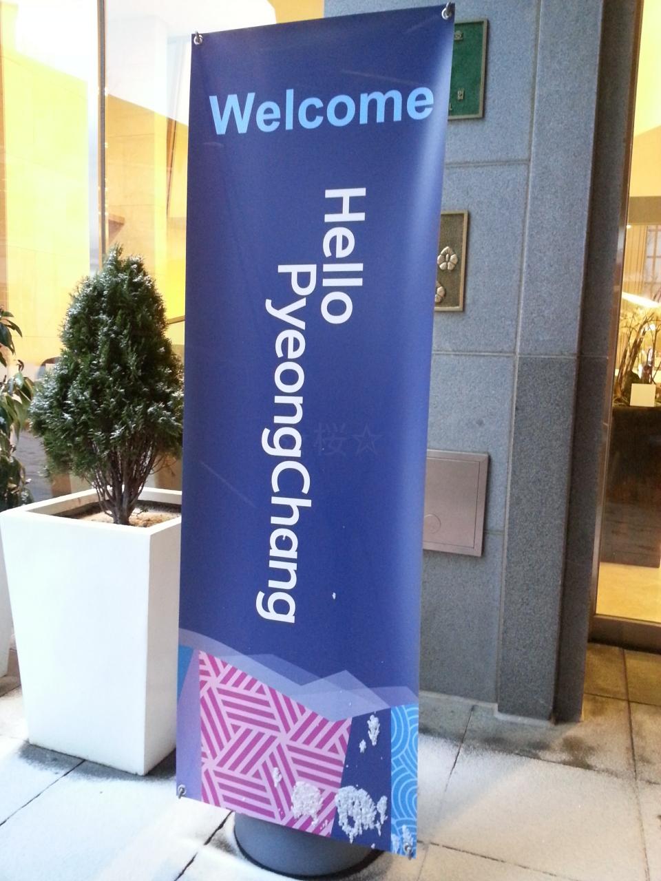 2018年冬季オリンピックのテストイベントが行われていることもあり、ホテルの入口にはバナーがありましたよ。 -