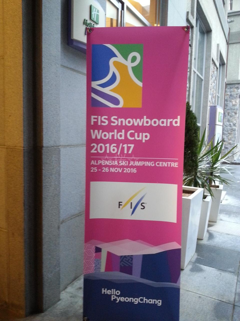 こちらには今回のテストイベント「FISスノーボード ワールドカップ」のバナーです。