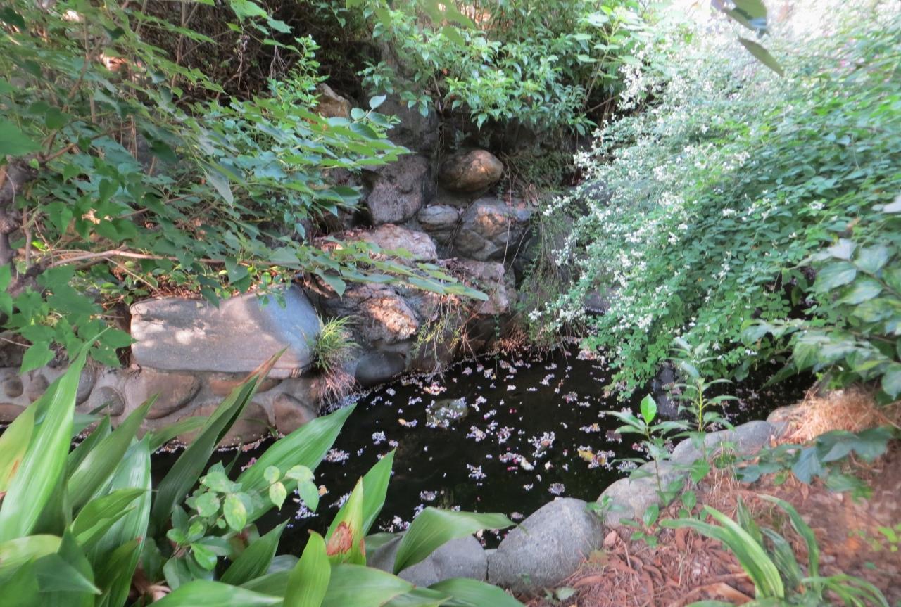 『高木山・宝周寺』の境内にあった池の光景です。庭園の一部として造られた池のようでしたが、周りの木々は伸び放題でした。