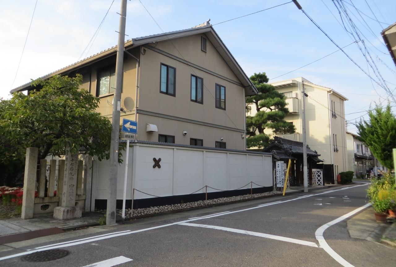 浄土宗のお寺、『高木山・宝周寺』の出入り口付近のズームアップ光景です。出入口の北側の塀にも、『違い鷹の羽』の寺紋が表示してありました。かつての美濃路と名古屋城の西側に近い場所ですから、新道六箇寺農地の三箇寺が固まった場所です。あとの二寺は、林貞寺と海福寺です。